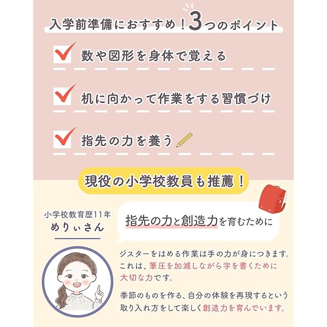 【多様性を楽しみながら伸ばす!】<br>ジスターは自由な発想力を伸ばし、達成感を味わえる知育玩具です。立体的な作品も簡単に作成でき、つくれる作品数は無限大。お子様の個性を尊重し、構成力や想像力、空間把握能力を育むサポートをします。<br><br>【年齢や成長に合わせた遊び方】<br>2~3歳:色の概念や神経系の発達を促す遊び。4?5歳:平面的な作品で構成力を向上。6?7歳:立体的な作品で空間把握能力と想像力を伸ばす。8?12歳:グループワークでルールに沿った作品作りが楽しめます。お子様の年齢や成長に合わせた夢中になれる遊びが盛りだくさんです。<br><br>【安全と安心への厳格な取り組み】<br> 1.誤飲しにくいサイズ:500円玉より一回り大きい直径3.3cm。 / 2.なめても安心の自然由来の塗料。 / 3.プラスチック製の玩具を柔らかくするために使用される「可塑剤(環境ホルモン)」も不使用。 / 4.全ての角を丸く加工し、怪我をしにくい設計。 / 5.一部バリがあるとのお声をいただいておりますが、2021年現在、一切ございません。<br><br>【グッドトイ2021受賞】<br>全国の幅広い年齢層に愛され、ご家庭や幼稚園、保育園はもちろん、ギフテッド子どもの会や発達支援センター、高齢者施設でも採用いただいております。<br><br>【セット内容】<br> 1.贈り物にも最適なシンプルな外箱 / 2.コインスライダー付きおうち型ケース(QRコード読み取り式動画説明書付属) / 3.棒さし遊び用土台×2個 / 4.棒さし遊び用のピン×18本 / 5.ひも通し遊び用×13カラー。お片付けや整理整頓も楽しみながら身につきます。