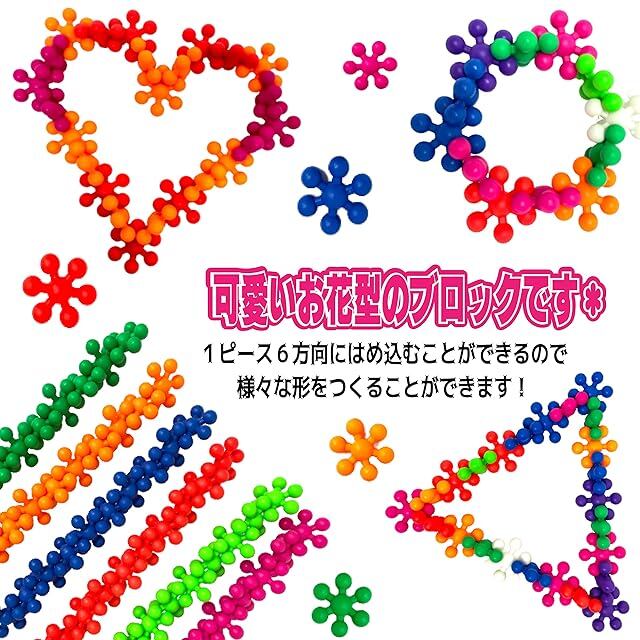丸いお花のような形とカラフルなカラーがとても可愛い立体パズルです!1ピース6方向にはめ込むことができるので様々な形を作ることができます。便利でお片づけしやすい収納ケースに入った300個セット!