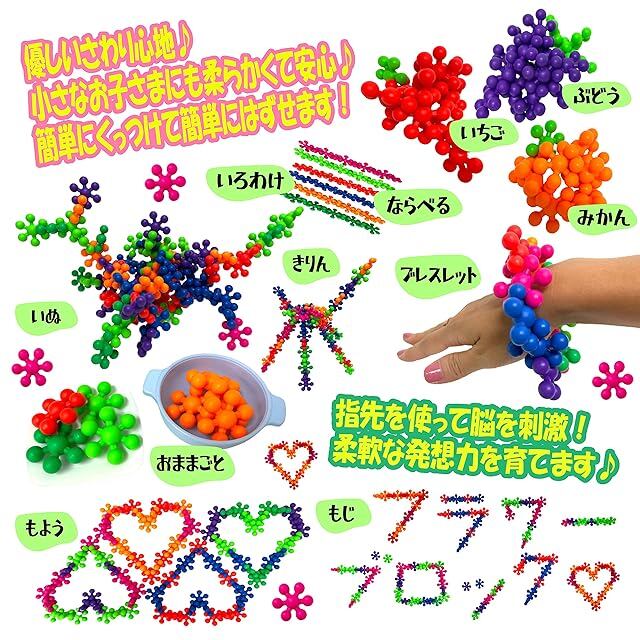 知育玩具として最適です!自由自在に楽しく遊びながら、掴む力や握る力、想像力・創造力、集中力など、さまざまな力が身につきます。