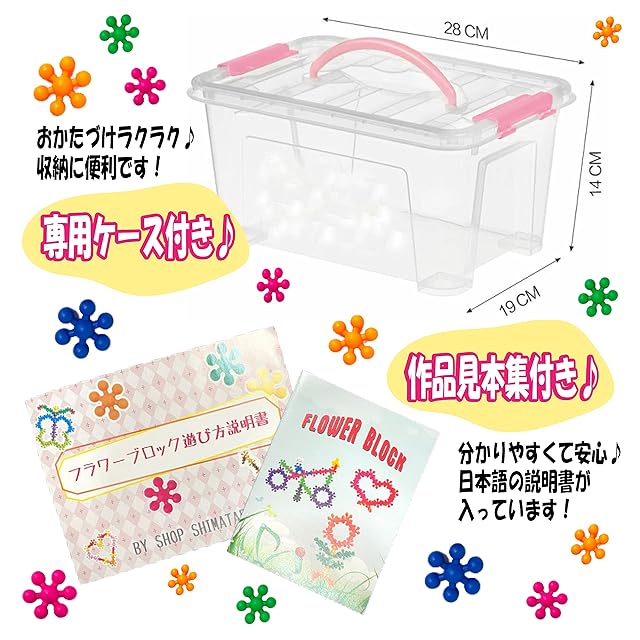 ・セット内容:フラワーブロック300ピース、作り方説明書1枚、作品例1枚、専用収納ケース フラワーブロックはSHOP SHIMATAROより商標権申請済みです。
