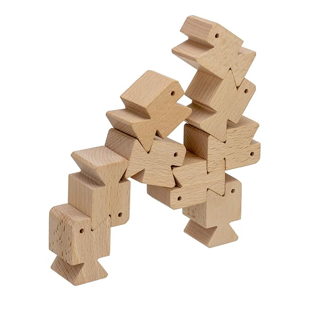 平らな面を使って上に積み上げる以外にも、クチとシッポを組んでアーチ状に組み合わせたり、2つの方向にヤジロベーのように積み上げたり、様々な形を作りましょう。
