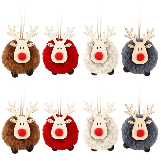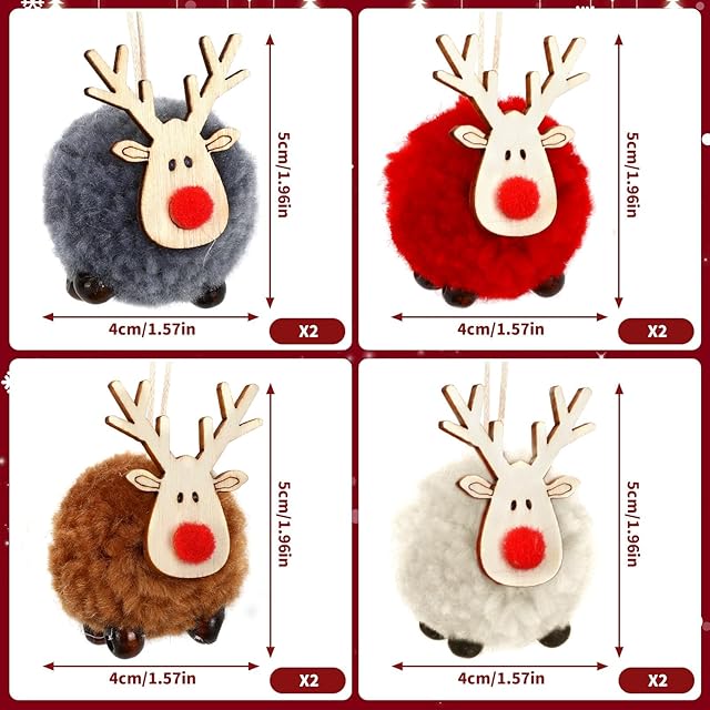 Neiang クリスマスツリー オーナメント トナカイ ぬいぐるみ 8個入 4色 クリスマスツリー飾り オーナメント 北欧 クリスマス 飾り トナカイ フェルト製 クリスマスプレゼント プチギフト 景品
