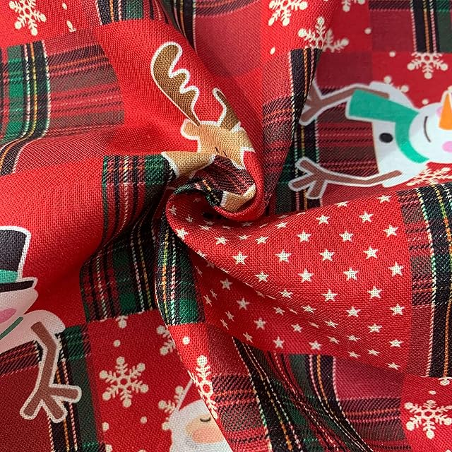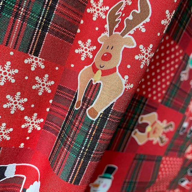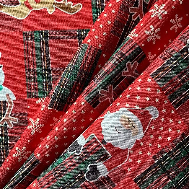 商品名:クリスマス 手芸用 生地 綿素材 布帛 平織 デジタルプリント 風呂敷生地 ふろしき 幅110cm (赤チェック柄, 50cm)
