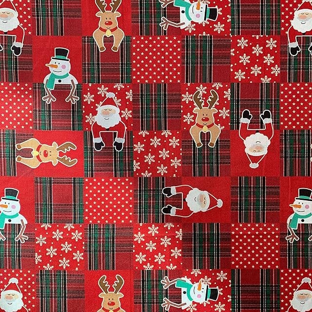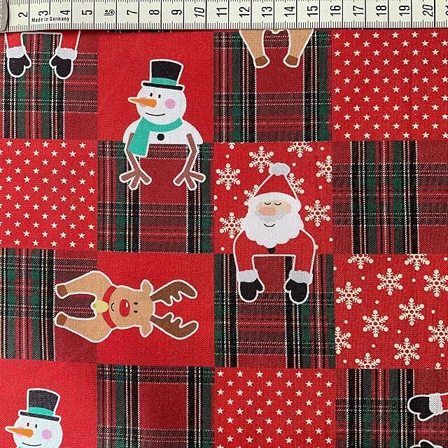 クリスマス 手芸用 生地 綿素材 布帛 平織 デジタルプリント 風呂敷生地 ふろしき 幅110cm (赤チェック柄, 50cm)