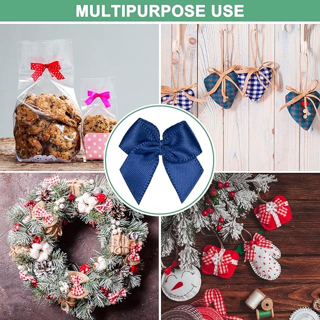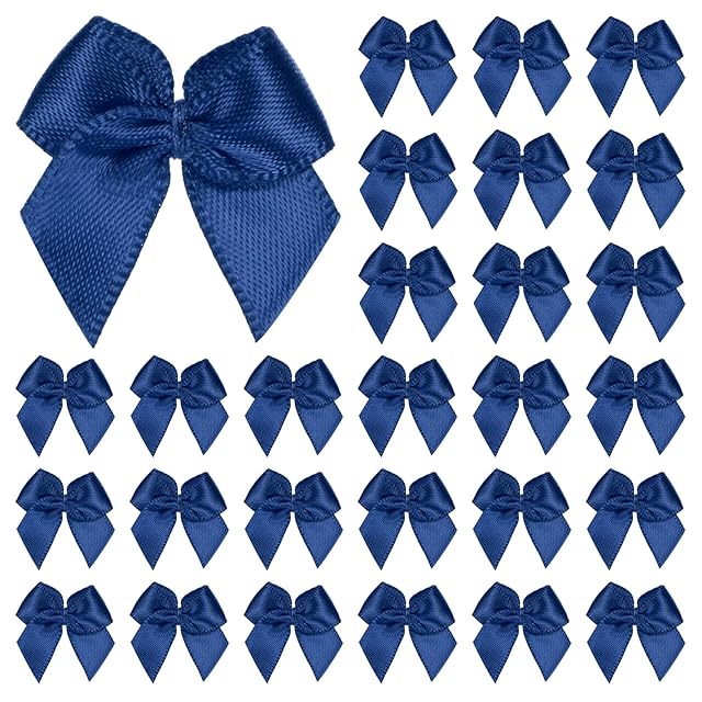 [サイズ&パッケージ] - 素材:ポリエステル;色:ネイビーブルー;全体サイズ:2.5x2.5 cm/0.98x0.98インチ(縦×横);リボン幅:1 cm/0.39インチ;パッケージに含まれるもの:50パック×ミニリボンボウ
