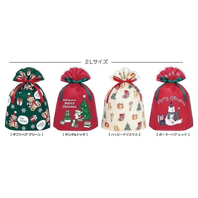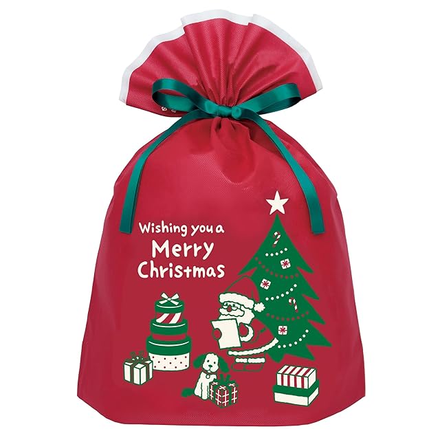 インディゴ クリスマス ラッピング袋 グリーティングバッグLL サンタ&ドッグ レッド XG077
