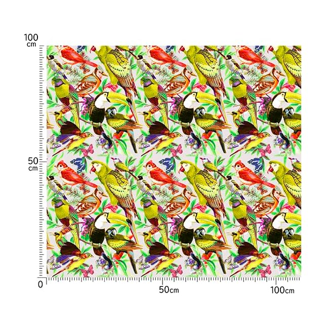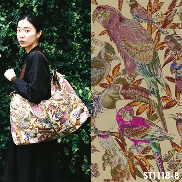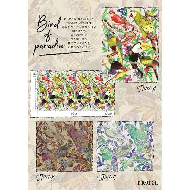 nora. ST1118-B 鳥柄 鸚鵡柄 南国風 リアルタッチ シーチング 生地 手芸用 綿 日本製 カット済み 22A (ベージュ,生地巾110cm×50cm)