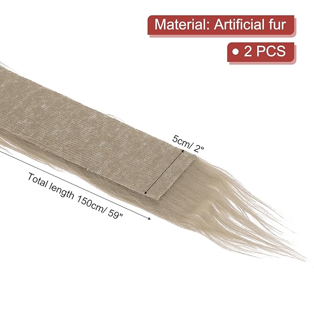 PATIKIL プラッシュフェイクファー織物プリカットストリップ2個 59 x 2" フラッフィーフェイクファーリボン 人工クラフトファー DIYクラフト クリスマス ハロウィン ガーディアン ビアード カーキ
