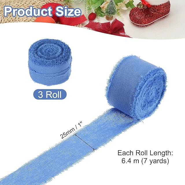 カラー:ヘイズブルー;素材:綿100%;幅:2.5 cm / 1";長さ(各ロール):6.4 m / 7ヤード;梱包リスト:ハンドメイドフリンジ綿リボン3ロール