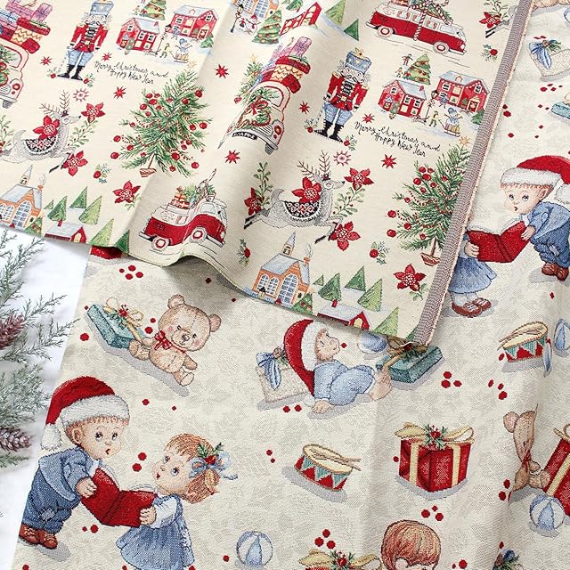 日本紐釦貿易(Nippon Chuko) オランダ輸入生地 「クリスマスキッズテディベア」ゴブラン織り生地 巾140×50cm切売り販売 GB-TAYLOR