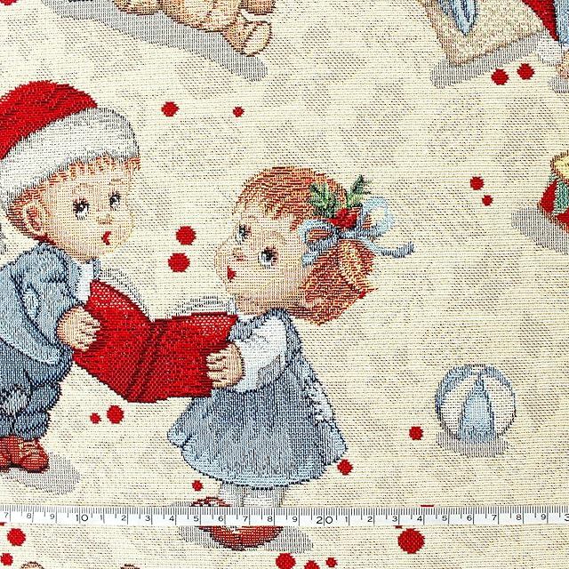 商品名:日本紐釦貿易(Nippon Chuko) オランダ輸入生地 「クリスマスキッズテディベア」ゴブラン織り生地 巾140×50cm切売り販売 GB-TAYLOR