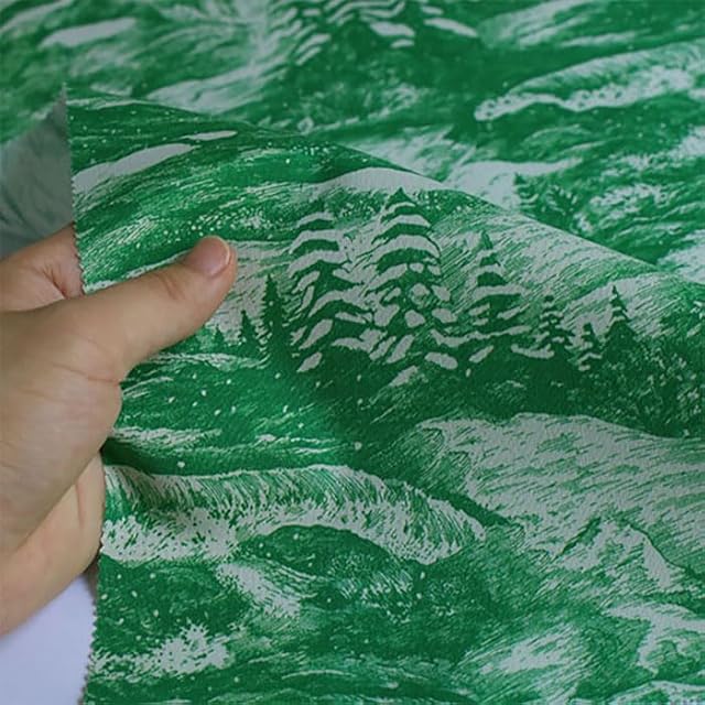 nora. SN1045-B モチーフ柄 植物柄 山 風景 クリスマス シーズン 雪 景色 もみの木 ノスタルジック おしゃれ cotton fabric コットン ハンドメイド ファブリック シーチング 生地 手芸用 綿 日本製 カット済み 23C (グリーン,生地巾110cm×50cm)