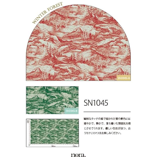 商品名:nora. SN1045-B モチーフ柄 植物柄 山 風景 クリスマス シーズン 雪 景色 もみの木 ノスタルジック おしゃれ cotton fabric コットン ハンドメイド ファブリック シーチング 生地 手芸用 綿 日本製 カット済み 23C (グリーン,生地巾110cm×50cm)