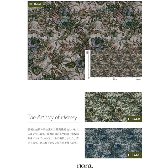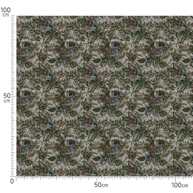nora. FR1361-B 植物柄 花柄 モチーフ柄 フラワー ボタニカル アンティーク シック おしゃれ ジャガード ゴブラン織り デジタル プリント unique パッチワーク pattern cotton fabric コットン ファブリック ハンドメイド シーチング 生地 手芸用 綿 日本製 カット済み 25C (グリーン,生地巾110cm×50cm)