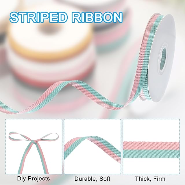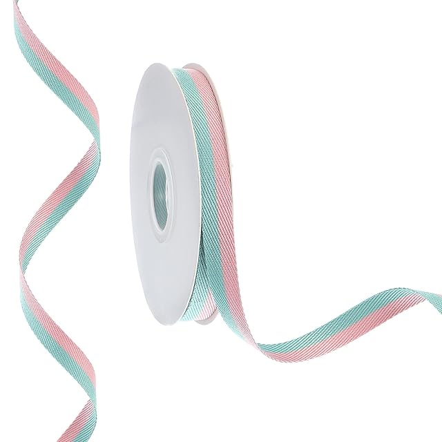 PATIKIL 9.8ヤード×0.4"のクリスマスストライプリボン リボンキャンディリボンロール生地包装リボン クラフトリース誕生日結婚式装飾 ピンク緑