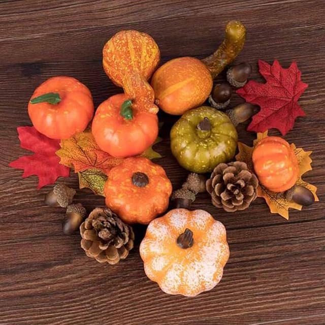 GOODCHI ハロウィン飾り ミニ かぼちゃ 置物 松ぼっくり 紅葉 どんぐり 組み合わせ パーティー 季節飾り パーティー ハロウィン 感謝祭 クリスマス 置物セット 50PCS 3D立体 コウモリ 12個