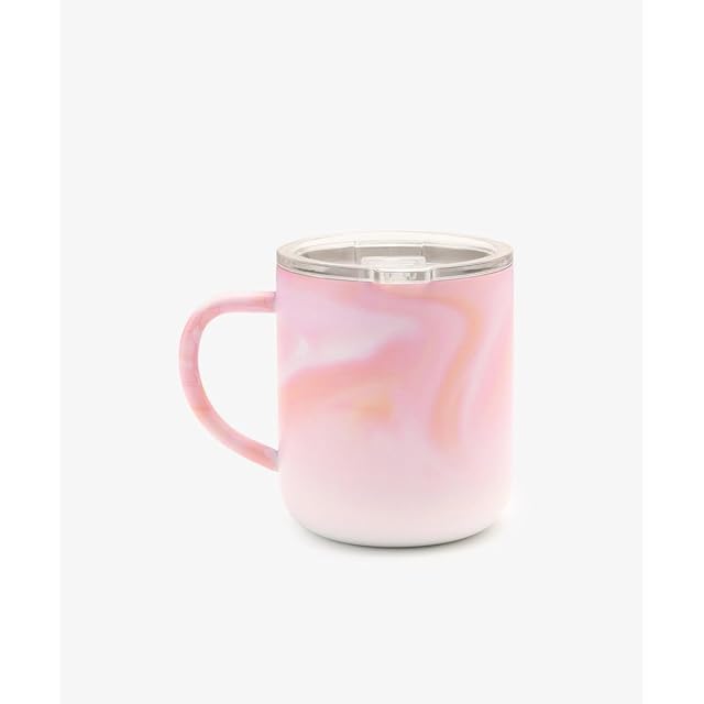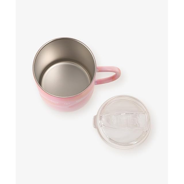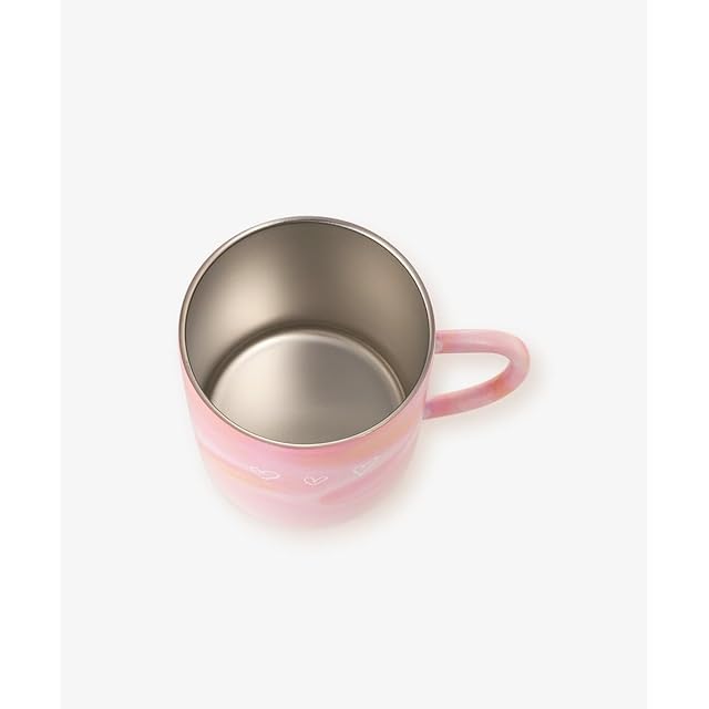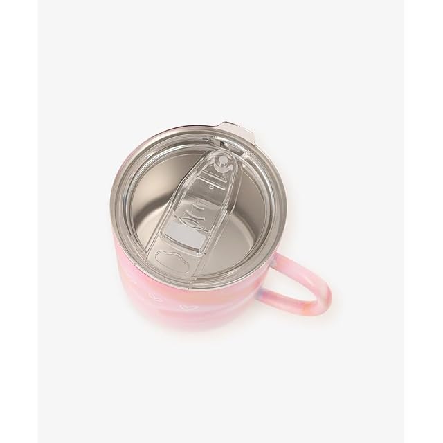 マーブルカラーにさりげなくあしらわれたハートがアクセントのステンレスマグカップです。蓋付きのため飲み物がこぼれにくく、ドリンクのあたたかさをキープしてくれるのがうれしいところ。飲み口はスライド式で簡単に開閉でき、お仕事や勉強の合間にも使いやすい設計です。持ち手は華奢なシルエットになっており、スタイリッシュな印象を演出してくれます。 コーヒーや紅茶を楽しむときにはもちろん、インテリアの一部としても映えるマグカップです。