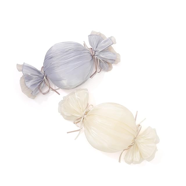 コロンとしたフォルムが愛らしいキャンディ型クッションです。<br/>艶やかな光沢のある生地を使用し、チュチュのようなたっぷりした生地感が楽しめます。<br/>華やかな形状と、ブーケのように長い2色のリボン装飾がロマンチックな印象です。<br/>【注意事項】<br/>洗濯:不可<br/>ドライ:不可<br/>乾燥機:不可<br/>アイロン:不可<br/>撥水加工:無<br/>商品の特性上、サイズや色などに多少のばらつきがあります。 素材の特性上、直射日光やライトに長時間照らされると変色する場合があります。<br/>使用中の摩擦により、毛羽立ち・毛羽抜け・毛玉が生じることがあります。<br/>強い摩擦や揉み作用により、縫い目や生地より中わたが吹き出したり、へたる場合があります。<br/>原産国:中国