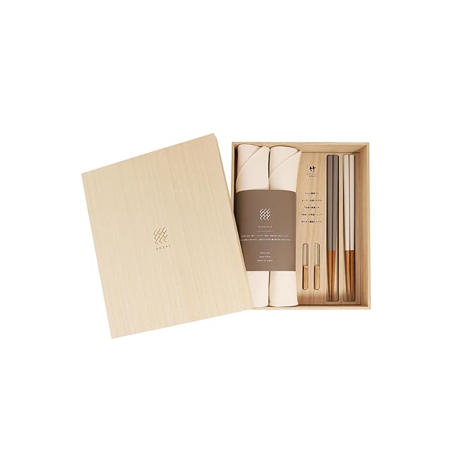 1点1点の素材の質感や、素材の持つ意味にこだわったお箸、箸置き、ランチョンマットのギフトセットです。<br/>お箸と箸置きに使われているのは、どんな環境でもまっすぐ成長する「竹」。「生命の象徴」や「未来への希望」として知られる縁起物です。ランチョンマットにはリネンが使われており、使うほどに味わいが増していきます。布や織物は人と人の関りを表し、大切な人のしあわせを願う贈り物として知られています。<br/>どなたでも使いやすい落ち着きのある色味で揃えているうえ、重厚感のある木のボックスに入っているので、ご両親や先生など、お世話になった方への贈り物としてもおすすめですよ。
