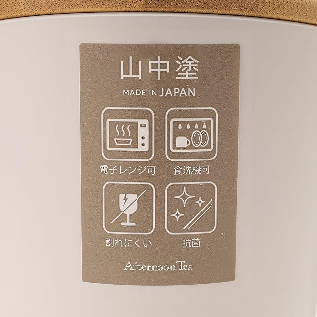 思わず手に取りたくなる、なめらかで美しい質感の山中塗マグカップです。<br/>高度な塗りの技術により、シンプルながらも上品な見た目に仕上げました。内側と外側を塗り分けた、アフタヌーンティーらしいカラーリングもポイントです。<br/>本体は丈夫で割れにくく、フタ付きでほこりなどが入りにくいのも魅力です。他にも同じシリーズのテーブルウエアをいくつかご用意しているので、是非この機会に揃えてセット使いしてみてはいかがでしょうか。<br/><br/>■普段使いにうれしい豊富な機能<br/>・電子レンジ可<br/>・食洗器可<br/>・抗菌<br/><br/>【山中塗】<br/>石川県加賀市の山中温泉地区で作られる漆器。伝統を受け継ぎながらも、プラスチック素地にウレタン塗装をした近代的な合成漆器の生産にも注力しています。メンテナンスの容易さに加え、豊富な形状やカラー、レンジ対応など高い機能を持つ器で人気を集めています。