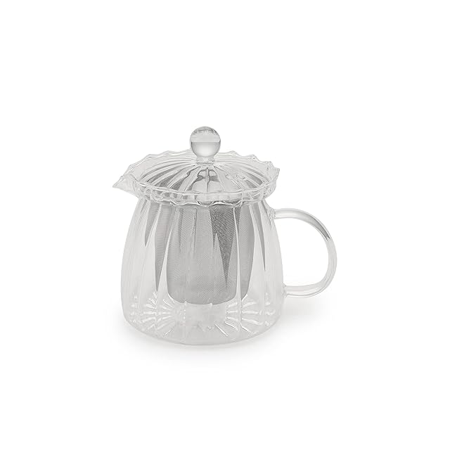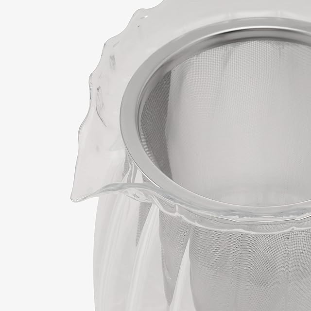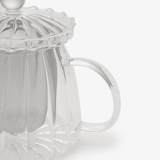 上品なフリル形状を取り入れドレスアップしたティーポットです。耐熱ガラスなので熱湯が注げ、電子レンジや食器洗浄機にも対応。お茶の量や濃さがひと目でわかるのが、ガラス製の大きな特長のひとつ。洗いやすく拭き取りやすい、取扱いが簡単な広口タイプです。注ぎ口は水切れが良いので、注いだ後に中身が垂れにくいのが魅力。大きめの茶こしはすぐに取り外せてお手入れの際の動作はスムーズ。ちょっと一息つきたい、いつものティータイムにこのアイテムを使用すれば、まるでカフェにいるかのような特別感をもたらしてくれる1品です。<br>*耐熱温度差/120℃