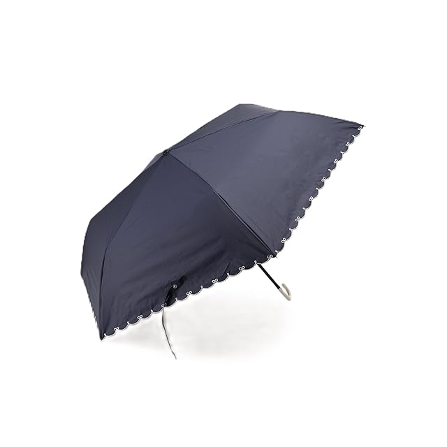 スカラップのディテールがかわいらしい、晴雨兼用の折りたたみ傘です。 縁取りにはリボンモチーフの刺しゅうを施して、ちょっぴり甘さをプラス。全体の色味をシンプルかつ大人っぽくしているのでガーリーな印象になりにくく、普段使いしやすいルックスになっていますよ。天気が良くても悪くてもお出かけの時間を快適かつ楽しくしてくれそうなアイテムです。 ■UVカット率・遮蔽率の高い生地を使用 ・UPF50+:紫外線をカットし、日焼けなど肌への影響を防ぐ。 ・遮熱効果:日差しから熱を遮り、傘の内側の温度が上昇することを抑えます。 ・晴雨兼用:耐水性に優れ、雨傘としても使用できます。