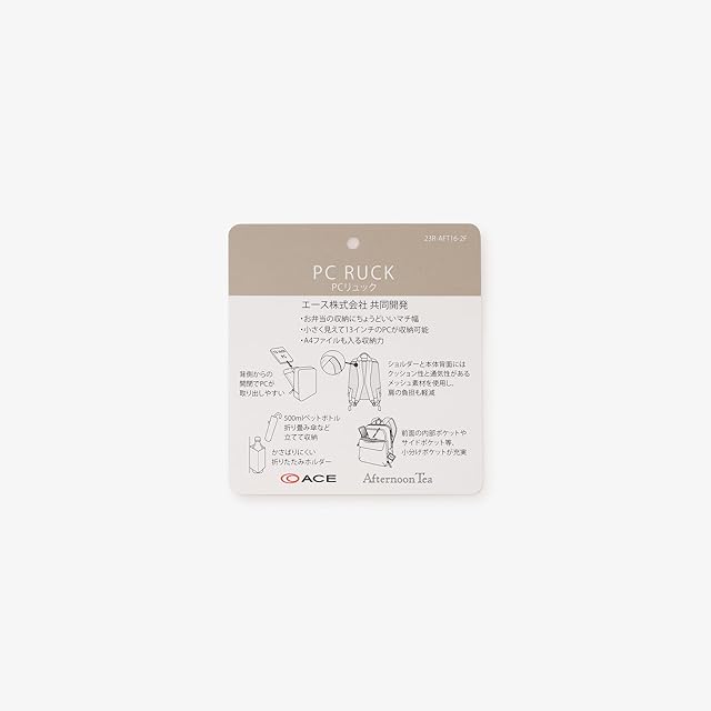 「エース株式会社」とアフタヌーンティーのコラボレーションで誕生したリュックです。<br/>小分けポケットを追加したりと、デイリーユースにうれしいたくさんの機能を搭載しました。メインスペースはダブルジップ仕様で、パソコンを出し入れしやすい背中側寄りの開閉に。ペットボトルはもちろん、お弁当や折りたたみ傘まですっきり収まる容量が魅力です。肩からずり落ちにくいよう、斜めのカーブを付けたショルダーパットもポイント。ショルダー部分と背中部分にメッシュを使用しているので、通気性にも優れるアイテムです。<br/>シンプルなデザインで、通勤や通学などさまざまなシーンに重宝。ご自分用にはもちろん、ギフトとしても喜ばれる1品です。<br/><br/>【エース株式会社】<br/>1940年創業の日本を代表する総合バッグメーカー。1953年に日本初となるナイロン製バッグを発明し、バッグの一大革命と言われる。以後、国産スーツケースのPROTECA(プロテカ)、ace.(エース)などのブランドを展開。機能性とデザイン性、耐久性を兼ね備えた商品に定評がある。<br/><br/>*対応PCサイズ/~13inch