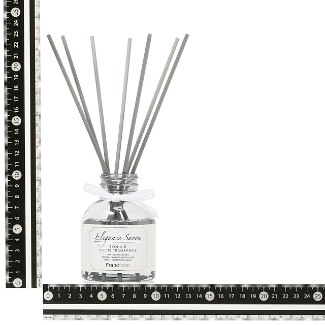 注意事項: シルバーキャップを開け、付属のスティックを数本ずつ、ゆっくりと挿入してください。一度に挿すと液がこぼれることがございますので、スティックに液を染み込ませながら、少しずつ様子を見ながら挿入ください。 使用するスティックの本数によって香りの調節ができます。※芳香が強い場合はスティックの本数を減らしてください。 受け皿などを使用し、壁面から離してご使用ください。 ※全ての生活臭に効果があるものではありません。予めご了承ください。 エレガンスサボンの香り トップ:レモン/ライチ ミドル:ミュゲ/ピオニー/ライラック ベース:シダーウッド/ムスク 【注意事項】 香りの持続時間:約3~4ヶ月 ※ご使用条件・環境により異なります。 スティック:グレーファイバースティック7本 アルコール:5% 引火点:60度 蓋が液漏れ防止の為、固くなっている可能性があり、開けにくいことがあります。開封時には爪割れ等にご注意ください。 本品は飲食物ではありません。誤飲等にご注意ください。 万が一飲み込んだ場合はすぐに医師に相談し、指示を仰いだ上で本品を持参し、診療を受けてください。