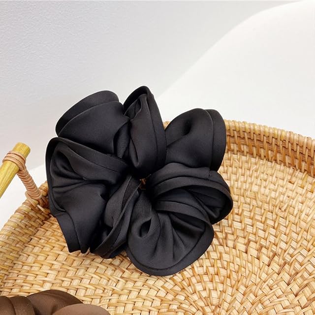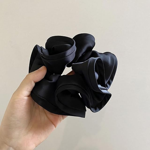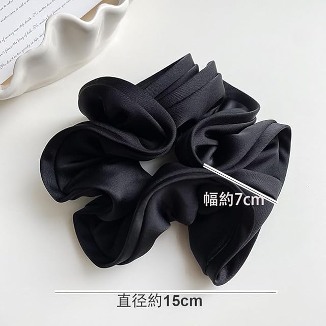 shefun シュシュ ヘアゴム ボリューム サテン 髪ゴム エレガント おしゃれ 大人 レディース 髪飾り JP218 (黒色)