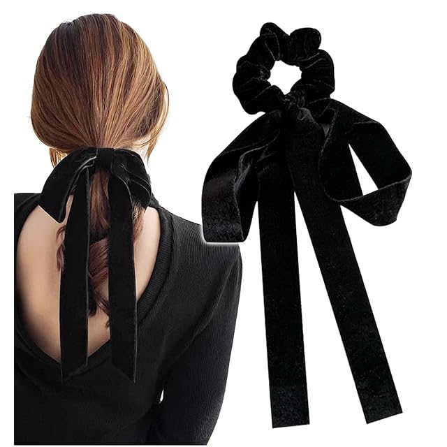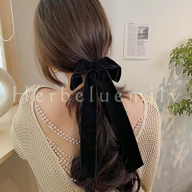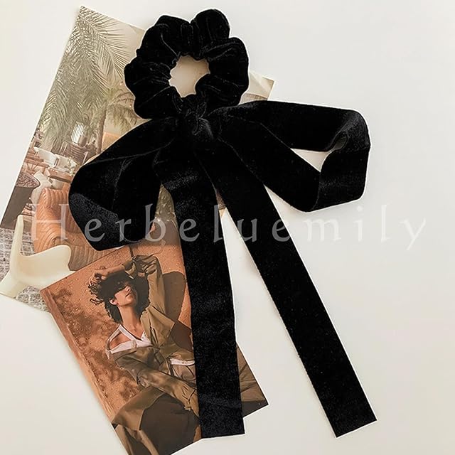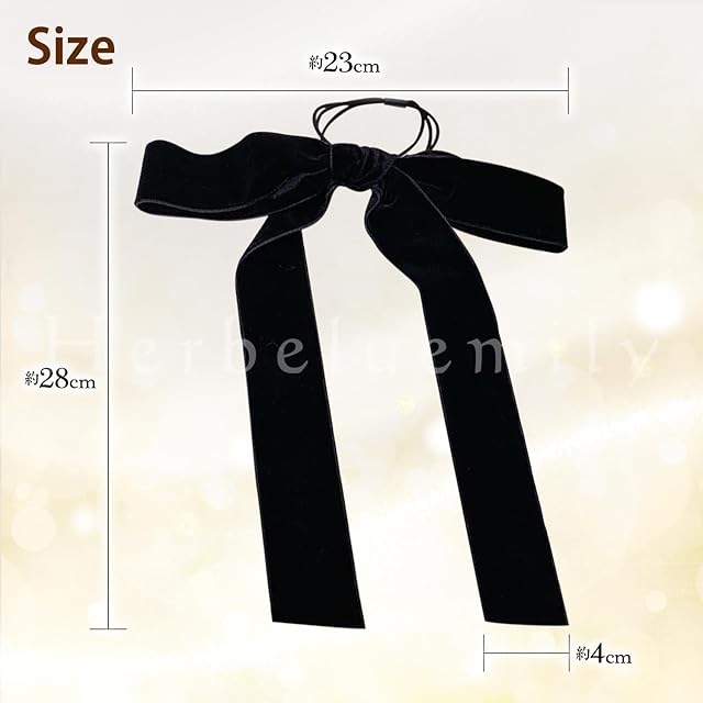 商品名:[Herbeluemily] ベロアリボン リボン ヘアゴム シュシュ 大きめ ベルベット ベロアリボンゴム 髪ゴム 黒 A シュシュ HM-0126-R03-A