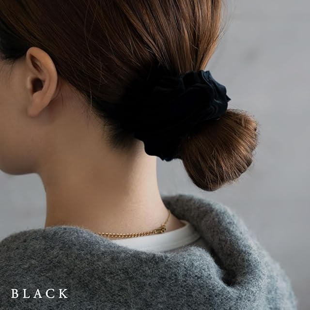 シックで上品な雰囲気のベロア生地シュシュです。ヘアアレンジが大人っぽくきれいめコーデにおすすめです。