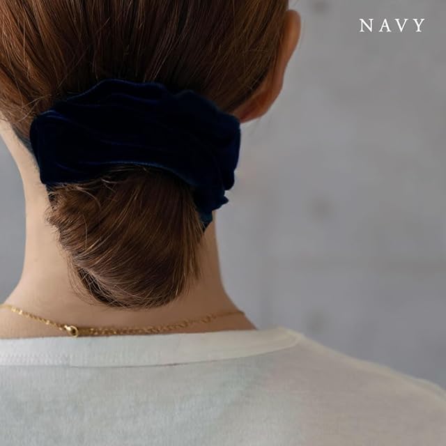 商品名:[ジュエルボックス] JewelVOX シュシュ ヘアアクセ レディース ベロア 光沢 ポニーテール ヘアアレンジ 大人 (ネイビー)