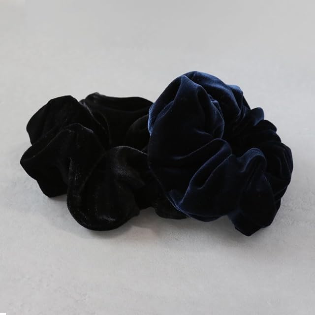 [ジュエルボックス] JewelVOX シュシュ ヘアアクセ レディース ベロア 光沢 ポニーテール ヘアアレンジ 大人 (ネイビー)