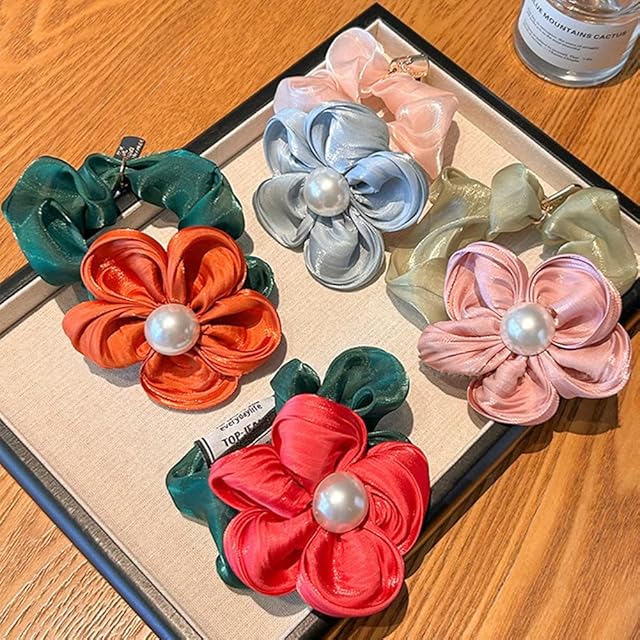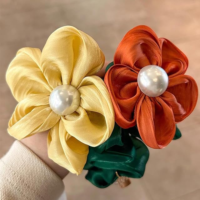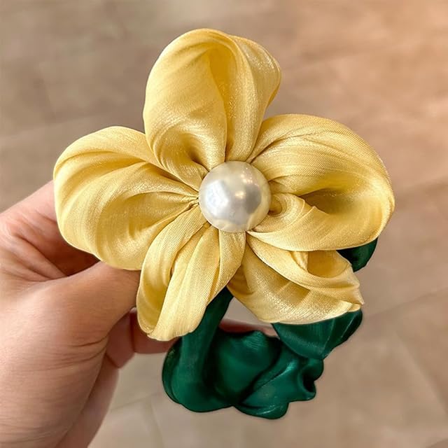 FASELE ヘアゴム シュシュ 光沢 エレガント ふんわり 大きい花 可愛い 髪飾り 女性 シンプル 優雅的 おしゃれ 日常 通勤通学 誕生日 発表会 結婚式 卒業式 入学式 パーティー 記念日 プレゼント