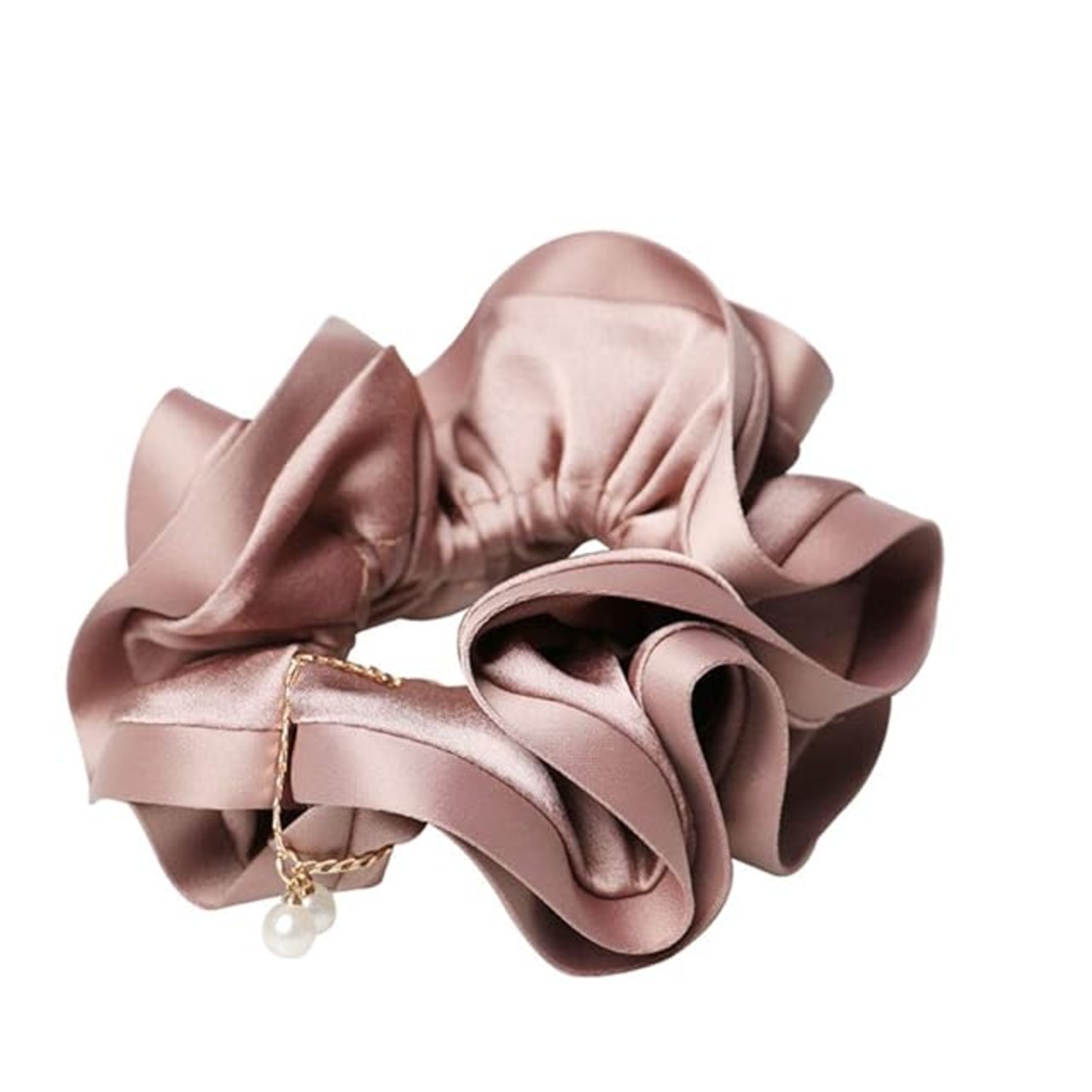 密度の高いギャザーなら無造作ヘアも華エレガントに仕上がる。デイリーにぴったりな、シンプル・定番カラーのパールシュシュ。