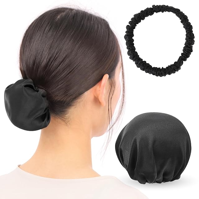 商品名:お団子 カバー ヘアゴム シルク 100% シュシュ ヘアケア 『髪を艶サラにする』 シニヨン ネット シルクキャップ お団子ネット (【普通】ブラック+Sゴム)