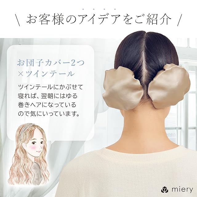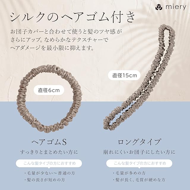 ■お団子にかぶせるだけの簡単ケアでツヤツヤ髪に 「お手軽なヘアケア方法を探している」 「ヘアケアしながらおしゃれも楽しみたい」 そんな方にお試しいただきたいのが、mieryの天然シルク100%のお団子カバー。お団子にかぶせるだけの簡単ケアで、あなたをツヤツヤ髪へと導きます。 シンプルで高見えするお団子カバーはそのままではもちろん、他のアクセサリーと組み合わせて使っても◎。おうち時間だけではなく、オフィスワーク中や接客業の方にもおすすめです。