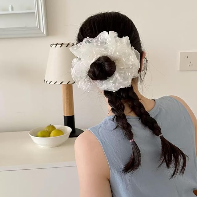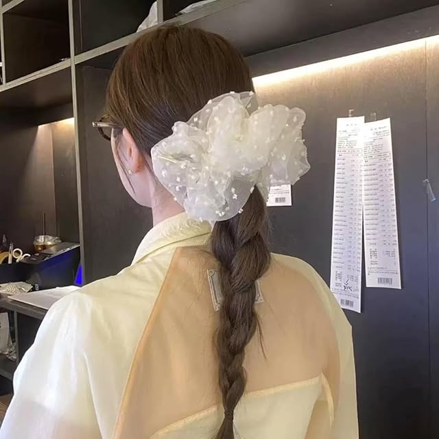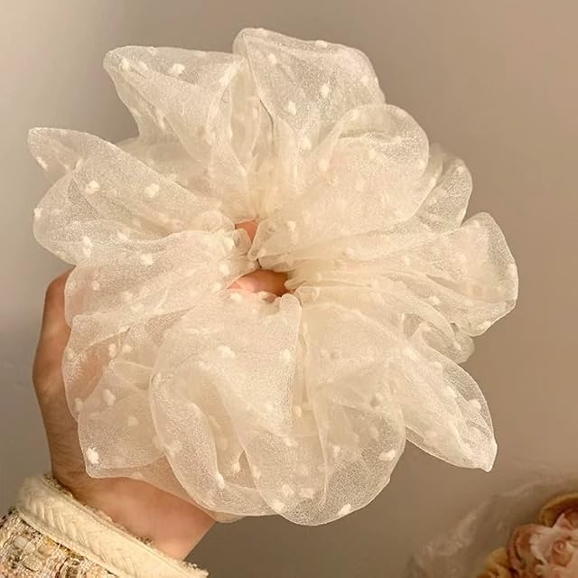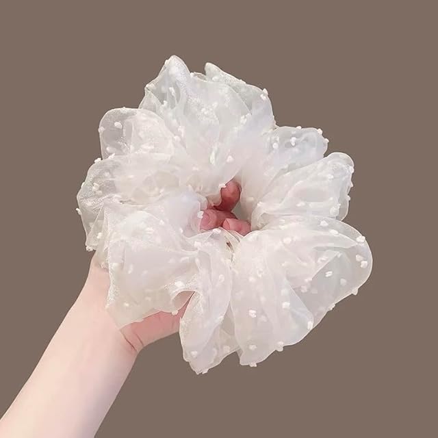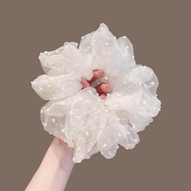 MISS MUMUヘアゴム 髪に優しい シュシュ 髪飾り 髪ゴム 跡がつかない 高弾性 おしゃれ 大人 女性 小顔 可愛い 入学式 卒業式 韓国風 立体感 大きめ(hx3A-雪の波点)