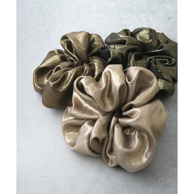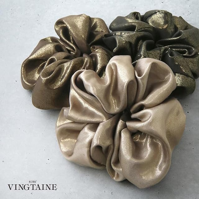繊細なメタリックの輝きが、光の角度によって表情を変えるシュシュ。まとめ髪にひと巻きするだけで、洗練された印象に。オフィスでもお出かけでも、さりげなく品格を添えるデザインです。
