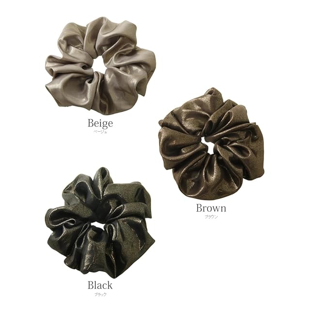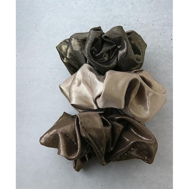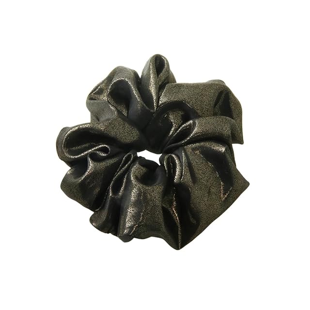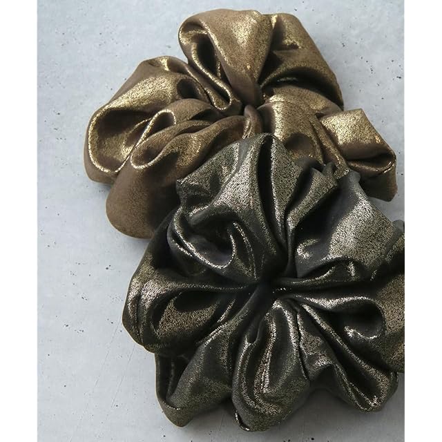 落ち着いたメタリックカラーが、派手すぎず上品な印象を与えます。シンプルながらも存在感があり、アクセサリー感覚で使えるのが魅力。カジュアルにもフォーマルにもマッチする万能シュシュです。