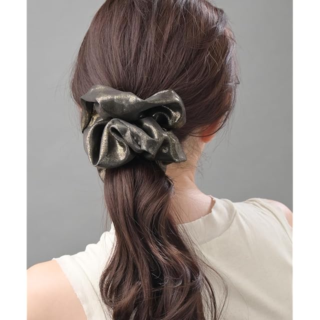 存在感たっぷりのメタリック素材を使用した、ボリュームシュシュ。光の角度によって表情を変える艶やかな質感が、髪を華やかに彩ります。シンプルなポニーテールにプラスするだけで、一気にこなれ感を演出。大きめサイズのボリューム感は、大人の女性の髪をしっかりまとめつつ、華やかさを添えてくれるのが魅力。オフィスシーンにはもちろん、ディナーやイベント、特別な日にもおすすめです。