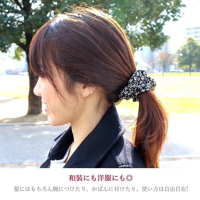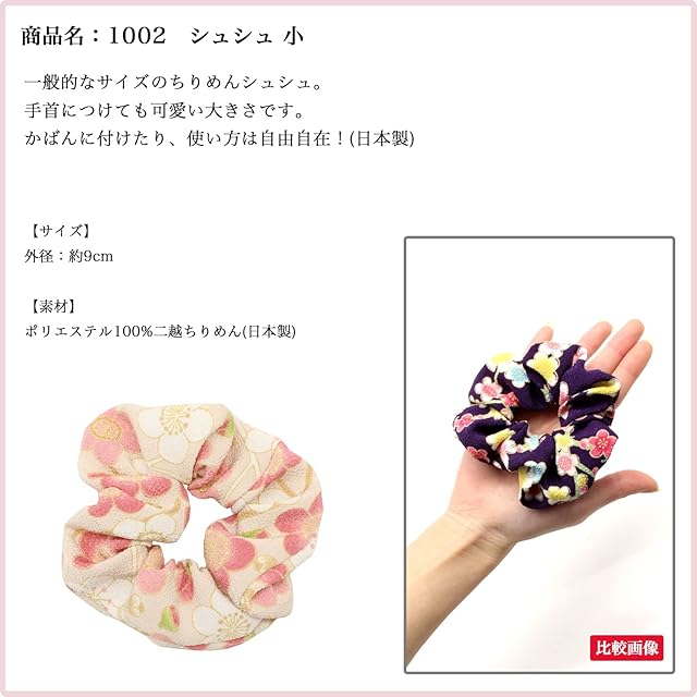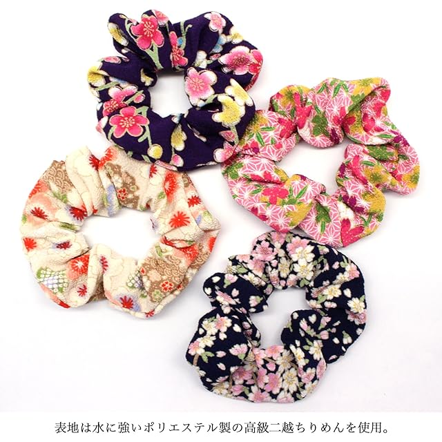 商品名:小紋工房 シュシュ 小 髪飾り ヘアゴム 二越ちりめん 京都 和KOMONO 江戸小紋 1002 (舞桜(青))