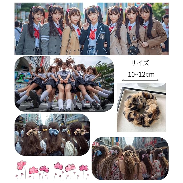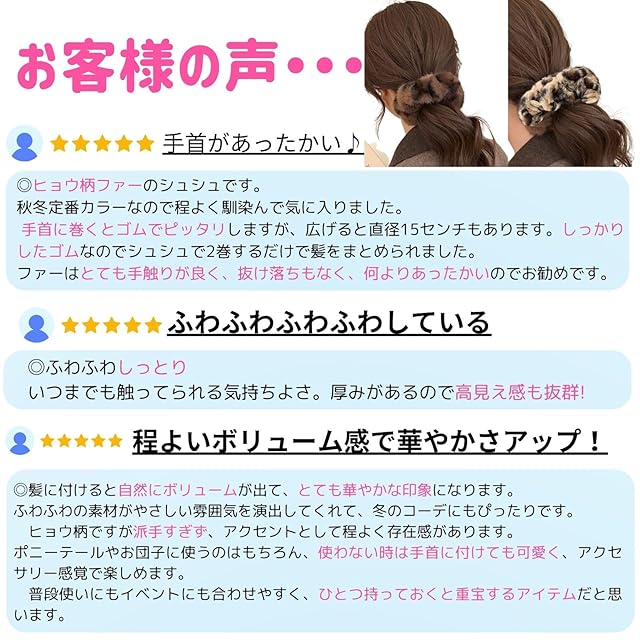 ふわふわモフモフ素材がかわいい、存在感たっぷりのヒョウ柄シュシュです。直径10〜12cmのやや大きめサイズで、髪をまとめるだけで一気に派手かわなスタイルに変身。ヘアアクセサリーとしてはもちろん、手首に付けてブレスレット感覚で使っても映える万能アイテム。 コギャル風やY2Kファッション、地雷系やギャル系スタイルにぴったり。もちろん、普段のコーデのアクセントやイベント・ライブ・パーティーにもおすすめ。インパクトのあるヒョウ柄がコーデを華やかに盛り上げ、周りの視線を集めます。 「ただのヘアゴムじゃ物足りない」「髪型をもっと目立たせたい」そんな方に最適。デイリー使いから特別な日まで、あなたの個性を引き立てるシュシュです。