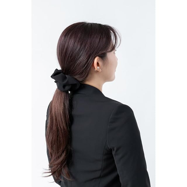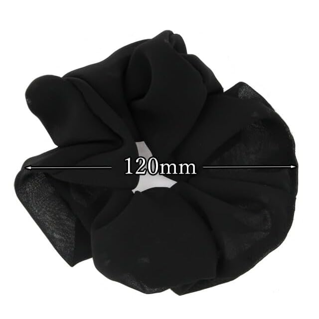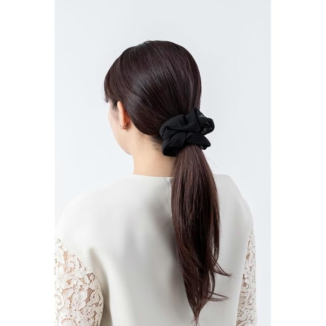 簡単ヘアアレンジ。<br> ◆サイズ<br> 平置き直径:約12.0 cm<br> ◆ 重 さ:8g <br> <br> ◆場所や時を選ばず、いつでも使えるシフォンの黒シュシュ。 合わせやすいシンプルなデザインがヘビロテをお約束。<br> ◆いつものお団子、ポニーテールがレベルアップ。 <br> ◆シンプルなブラックなので、お仕事やフォーマルな式典にもぴったりです。<br> ◆就活、受験、学校行事、オフィスにも。<br> ◇安心の日本製です。