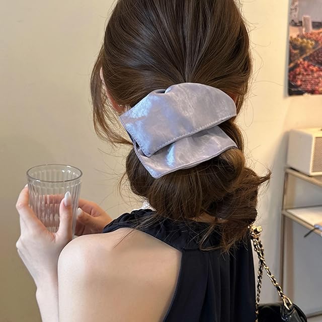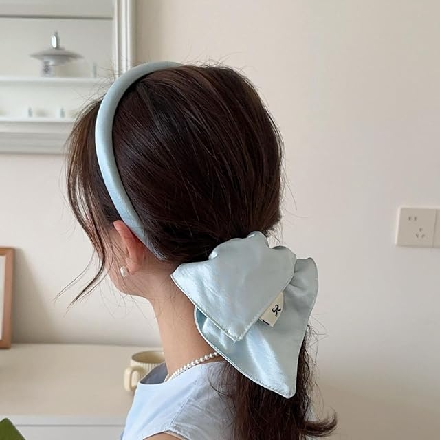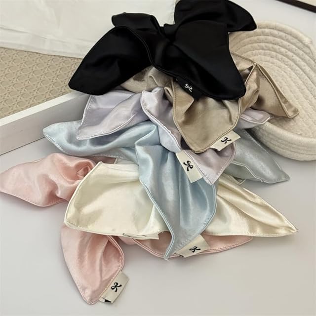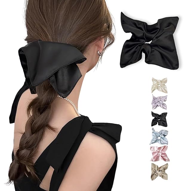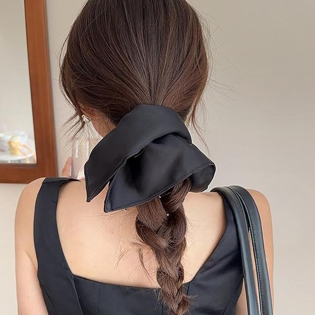 Fesanla シルクヘアゴム サテン ボリューム シュシュ 大きめ 髪飾り ヘアアクセサリ 大人 無地 1個 (ブラック)