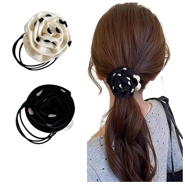 FASELE シュシュ ヘアゴム 髪ゴム 髪留め エレガント 大人 可愛い 優しい 髪飾り 優雅的 女性 森ガール 薔薇の花 韓国風 おしゃれ 日常 通勤通学 誕生日 発表会 結婚式 卒業式 入学式 パーティー 記念日 プレゼント 2点セット