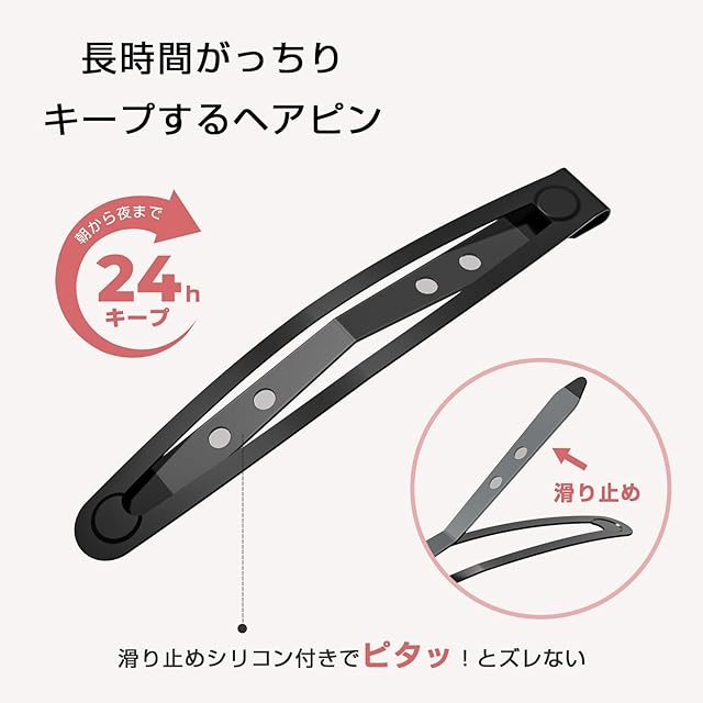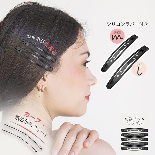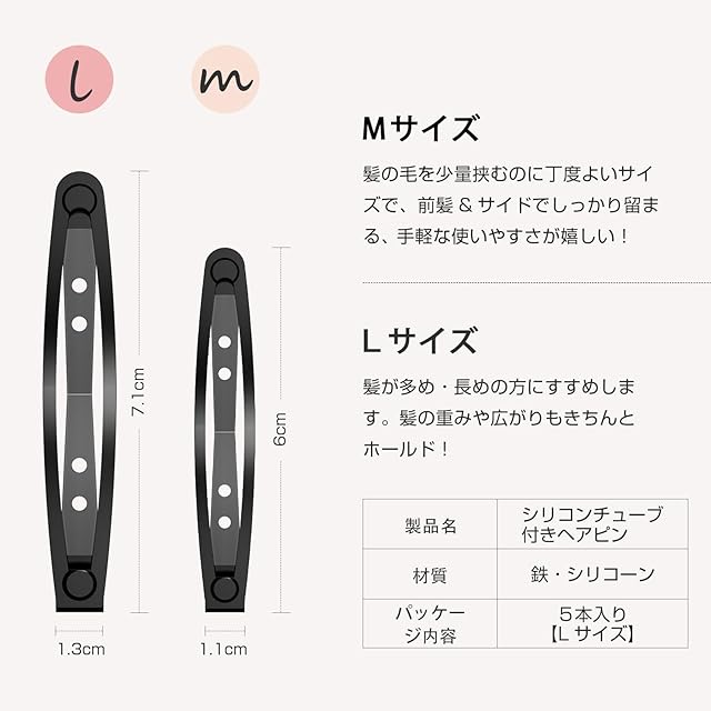 【パッケージセット・素材】Lサイズ*5個入り、7.1cm; 【色】黒;【素材】鉄、シリコン。ヘアピンの表面は焼き付け塗装でできて、長期間使用しても錆びにくいです。