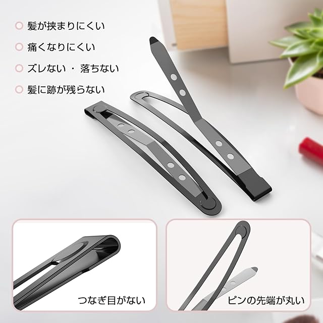 【カーブ設計・髪に跡が付きにくい】全体はカーブデザインが採用し、頭の形に自然に沿ってフィットします。スリムピンはシリコンチューブが付いたので、長時間つけていても髪に跡が付きにくいです。普通のヘアピンと違って髪に絡まりにくく、引っ張ることなく簡単に着脱できます。