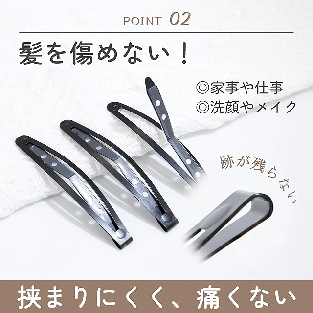 【カーブ・髪に跡が残らない】全体はカーブデザインが採用し、頭の形に自然に沿ってフィットします。髪に跡を残さず、髪を傷めることなく固定できます