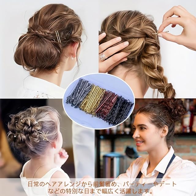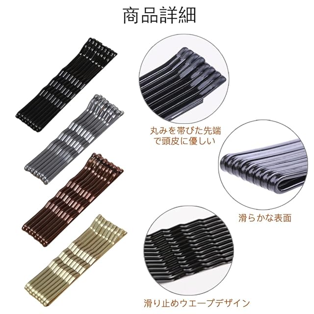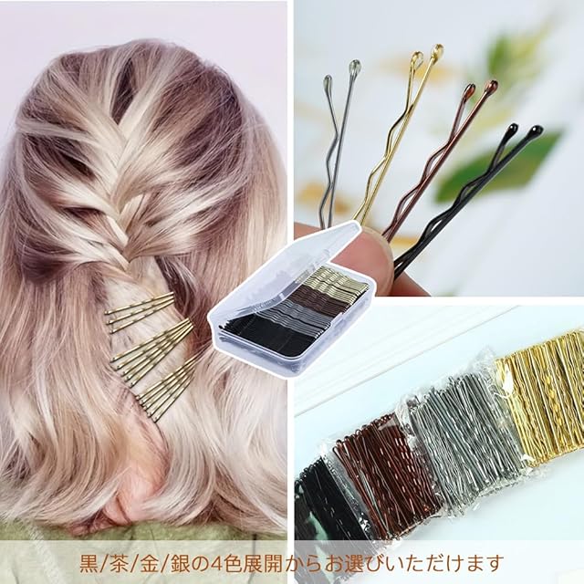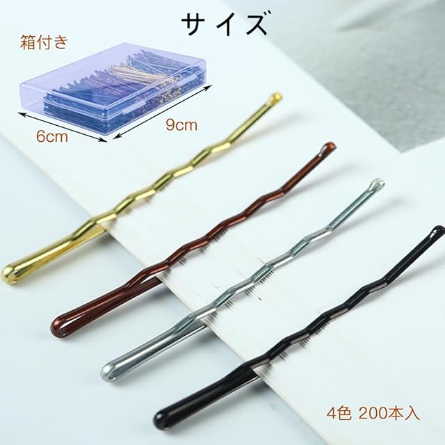 商品名:ISHR ヘアピン 4色 200本入 アメピン スモールピン 前髪クリップ 髪をまとめる 強力アレンジピン 可愛い 扱いやすい 成人式 卒業 レディース (黒/茶色/金/銀)